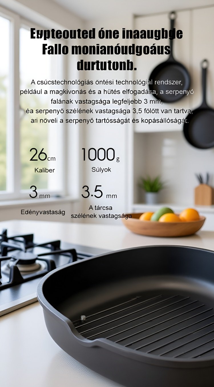 Különleges steak serpenyő – Prémium anyagból, egyenletes hőelosztás, tapadásmentes felület, ergonomikus fogantyú, mosogatógépben tisztítható, hosszú élettartam.